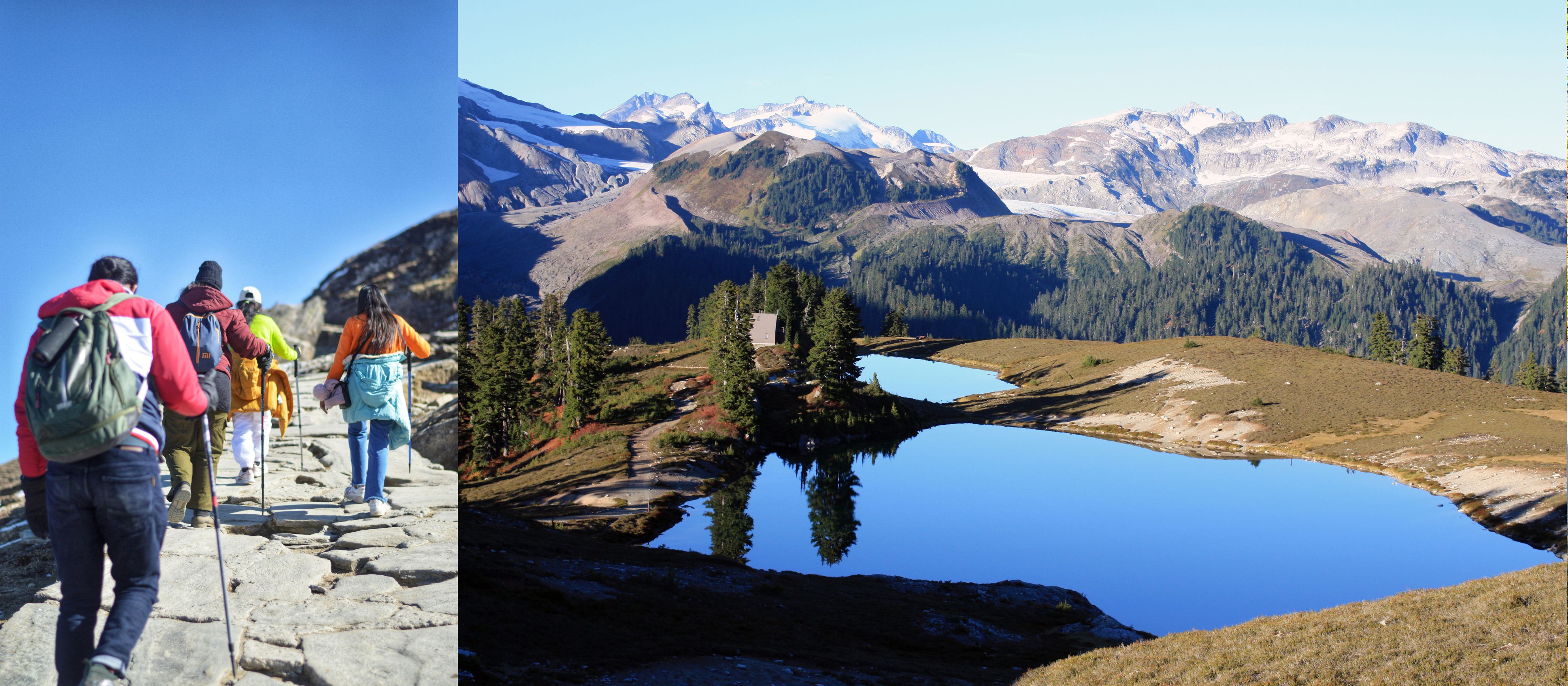 In the morning the group will travel from Squamish to Whistler to take the Whistler Gondola up to the peak and hike the High Note trail. This trail offers hikers with the most scenic views of Cheakamus Lake with its vibrant aquamarine waters. The hike begins at the top of Whistler Mountain and takes you around the backside with views of the surrounding mountains and a descent through an alpine area. After the hike you’ll have free time to enjoy Whistler before returning to Squamish. Consider checking out the ​​Squamish-Lil'wat Cultural Centre, the Cloudraker Skybridge, or find a cozy coffee shop in town. In the evening at camp you’ll have your final dinner as a group around the campfire.